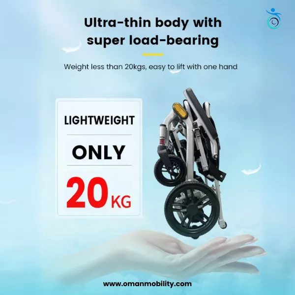 This lightweight electric wheelchair weighs 20kg, ideal for everyday travel and mobility.