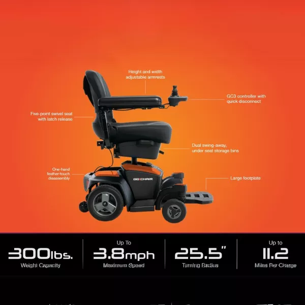 The Go Power Wheelchair is compact and portable and provides great comfort to seniors and disabled people. Its lightweight and travel-friendly function is ideal for both indoor and outdoor use. Go Electric wheelchair features an advanced folding system and feather-touch disassembly, ensuring comfort and safety while moving.